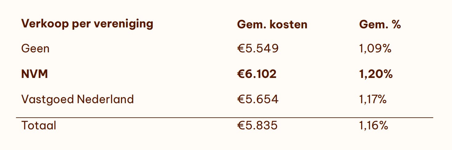 Uit het onderzoek volgt dat huisverkopers die een NVM-makelaar in de arm nemen, het duurst uit zijn. Gemiddeld vraagt een NVM-makelaar 500 euro meer dan een makelaar van Vastgoed Nederland of een onafhankelijke makelaar.